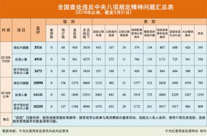 2018-04-25为掌握全国贯彻落实中央八项规定精神情况,中央纪委在各省区市和新疆生产建设兵团、各中央和国家机关、各中央企业和中央金融企业等建立了落实中央八项规定精神情况月报制度...